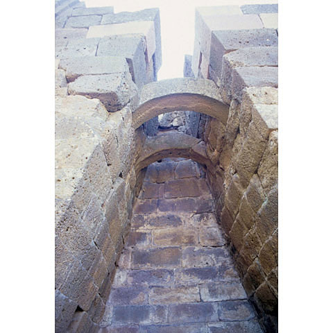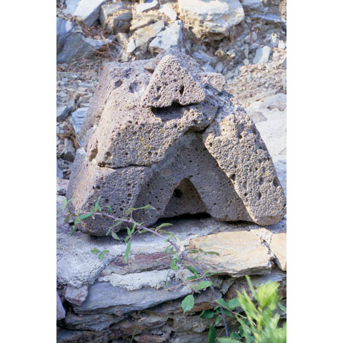 Esta estructura, con un patrón curvilíneo muy irregular, está construida en la base con bloques de traquita y basalto bien trabajados, que se superponen por una estructura de finas losas de esquisto, probablemente construidas en épocas posteriores.