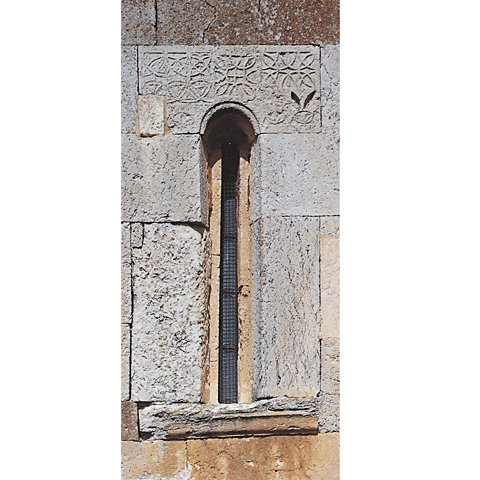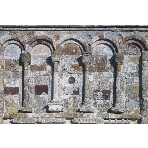 Los arcos recorren la terminal de los flancos y el ábside, salpicados por una pilastra mediana. A cada lado, hay dos ventanas de una sola luz, con trompetas lisas y escalonadas, como las del ábside.