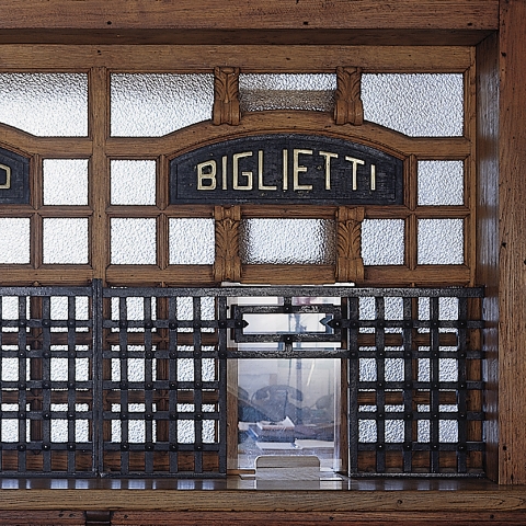 La parte decorativa de Giuseppe Biasi, que pintó el interior entre septiembre y octubre de 1931, es particularmente importante. Las pinturas, parcialmente perdidas, representan escenas de la vida en el campo, destinadas a las paredes del atrio y, a momentos de la vida cotidiana, a la sala de espera de primera clase: todas se caracterizan por una amplia gama de colores, tanto oscuros, vivos como brillantes.