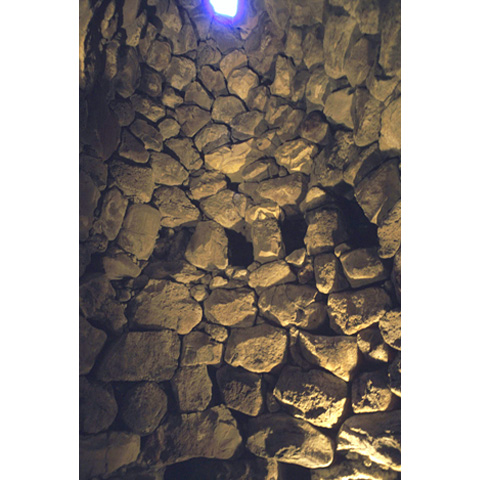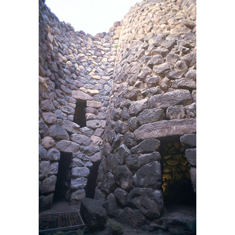Un système de liaison verticale complexe, qui utilisait des escaliers et des passages entre murs inclinés, des escaliers et des ponts mobiles pour les accès surélevés, reliait les étages intérieurs du donjon et les supports des rideaux, aux tours marginales, au donjon et à la cour intérieure. Il avait une forme semi-elliptique et était également accessible depuis le rez-de-chaussée par une entrée donnant sur le rideau SE. La même cour, équipée d'un puits d'eau de source de 20 m, surplombait les entrées des chambres basses du donjon et des tours O, E, S, ainsi que l'ambulance qui menait à la chambre de la tour N. L'érection d'un antumural primitif de cinq tours remonte également à cette phase chronologique.
