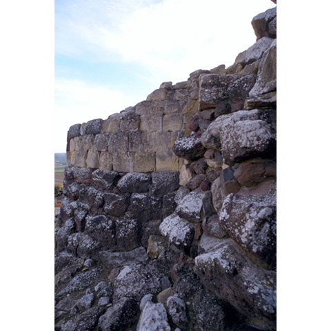 Le donjon, aujourd'hui surélevé, fait d'ouvrages polygonaux, avait un diamètre basal d'environ 12 m, trois étages et une terrasse, et s'étendait sur une hauteur de près de 19 m. L'entrée s'ouvrait au S, les pièces étaient devenues des « tholos ». Le bastion était composé de quatre tours reliées par des rideaux droits. Les tours avaient deux étages et étaient équipées de deux types de persiennes. Le donjon, les rideaux et les tours étaient couronnés d'étagères supportant des ballatoi-plumbatoi.