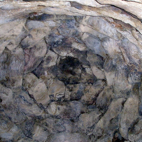 La pièce, intacte, de plan plutôt écrasé (diamètre 4,60/3,30 ; hauteur 5,90 m), est agrandie de trois niches et de deux puits de stockage accessibles au niveau du sol.