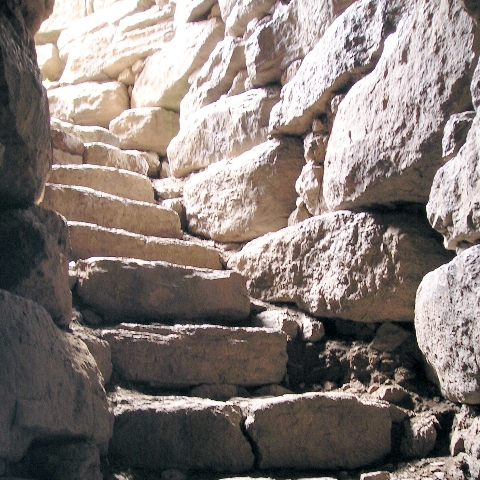 L'escalier continue jusqu'au dernier étage où l'on peut identifier les vestiges d'une troisième pièce.