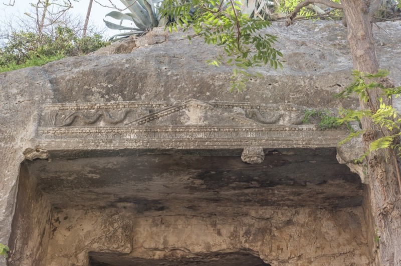 La façade, creusée dans la roche, reproduit celle d'un temple de style composite ionique. À l'intérieur, le mausolée est divisé en trois pièces : un vestibule, une première chambre funéraire, une deuxième chambre funéraire.