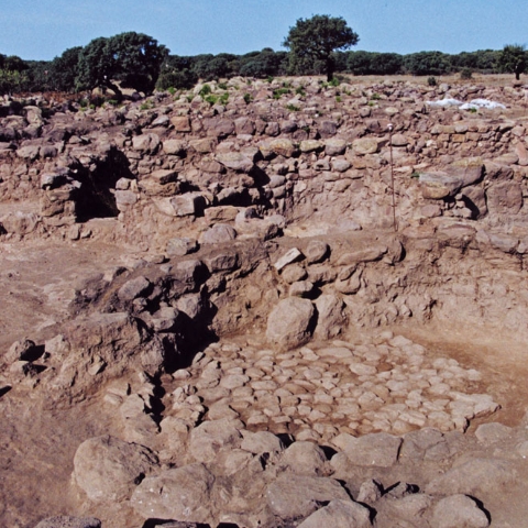 Les fouilles du village ont permis de découvrir des cabanes en grande partie non communicantes, qui donnent sur différentes cours. Ils ont un plan circulaire ou quadrangulaire et sont construits avec des rangées de pierres superposées attachées avec du mortier de boue et des coins.