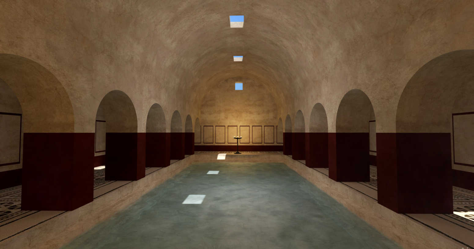 Il raccordo tra i due stabilimenti veniva assicurato da una scalinata che si affacciava sul portico della "natatio".