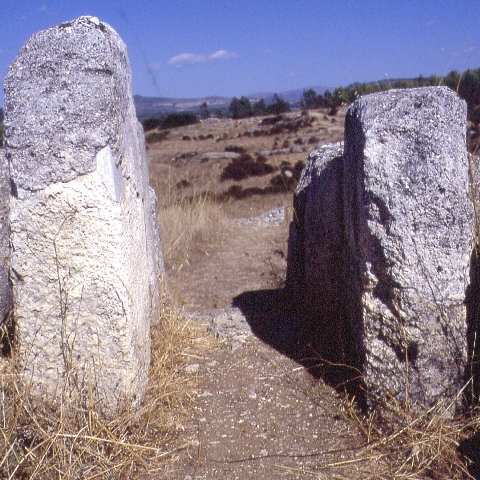 Il portello introduce nella cella funeraria lunga circa 10 m e preceduta da uno stretto corridoio di ingresso marginato da lastre ortostatiche. Le pareti della cella sono realizzate a filari di pietre in aggetto, la copertura originaria era a sezione ogivale. La pianta ricorda le "navetas" delle Baleari. Durante lo scavo si rinvennero diverse statue-menhir del Calcolitico, con i tipici motivi simbolici scolpiti in rilievo: esseri umani capovolti, in schema "ancoriforme" o "a candelabro", provvisti o meno di pugnale. Una delle statue-menhir, particolarmente ben conservata, costituisce uno degli ortostatati del breve andito di ingresso della tomba.
