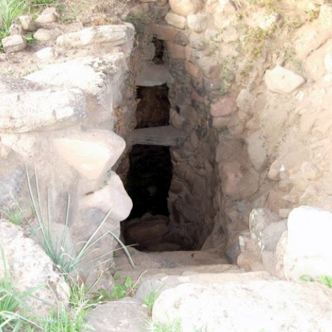 Il pozzo sacro è connesso ad un villaggio di capanne di diversa tipologia planimetrica.