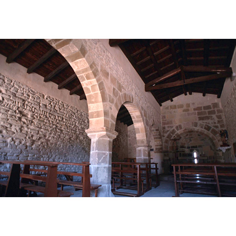 L'edificio romanico fu eretto nella seconda metà del XIII secolo. Ha pianta a due navate, divise da pilastri a sezione ottagonale, e un'unica abside, piuttosto tozza, rivolta a N/E, che conclude la navata S, di dimensioni maggiori rispetto all'altra. Probabilmente anche la navata minore doveva essere absidata, come si presume osservando i fianchi dell'edificio, entrambi rimaneggiati. Nell'abside si apre una monofora strombata, con centina a tutto sesto.