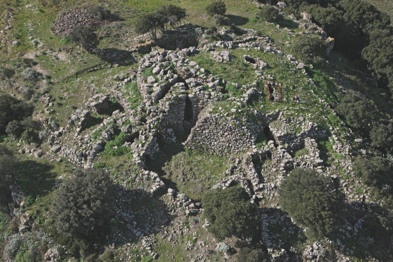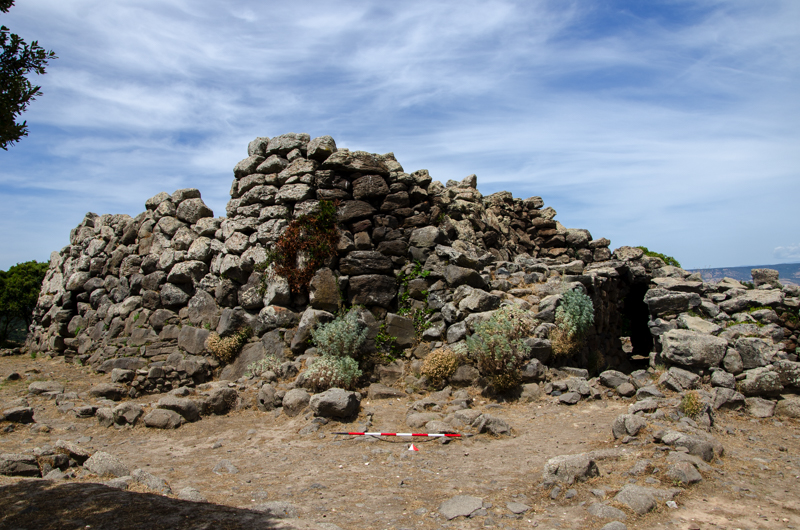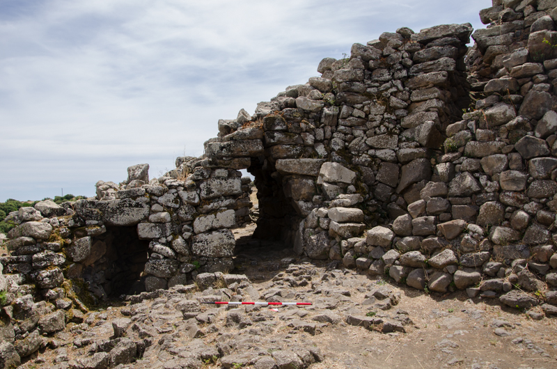 L'edificio più antico è un protonuraghe a corridoio che presenta una planimetria a tre lobi, quasi a "Y", con ingresso rialzato di circa cinque metri, raggiungibile mediante una scala ricavata nelle murature stesse. Il vano interno è costituito da un corridoio attualmente a cielo aperto: alcuni gradini residui testimoniano l'originaria presenza di un livello superiore (o un terrazzo) oramai scomparso. Gli altri due corpi aggiunti si addossano al protonuraghe centrale nei versanti orientale ed occidentale, modificandone completamente la fisionomia. L'edificio orientale è percorso da un corridoio a copertura mista (tabulare ed ogivale), marginato da ambienti minori; il corpo occidentale ospita una tholos circolare, con ripida scala che saliva ai livelli superiori, ed un ulteriore vano di raccordo di pianta quadrangolare e copertura ogivale, a sua volta articolato in una piccola celletta laterale. È presente un cortile interno sul quale si affacciavano diversi ambienti minori; da esso parte anche la lunga scala dell'edificio più antico.