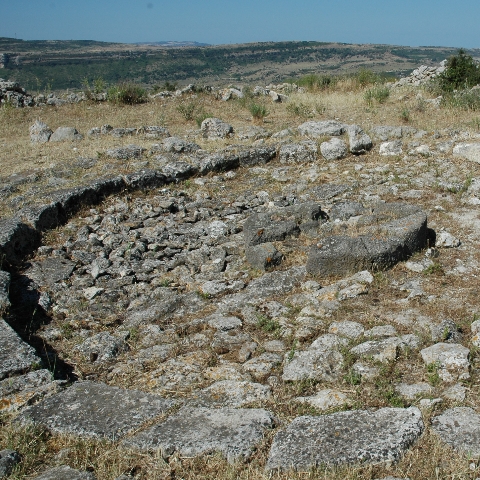Consiste en una extensa ciudad en la que destaca un gran edificio circular (11 m de diámetro exterior e interior 7,60 m), que presenta elementos típicos de las llamadas «casetas de reuniones»: un asiento circular apoyado contra las paredes y una base circular central sobre la que originalmente descansaba una torre de betilo (encontrada durante la excavación situada en la pared de la habitación).