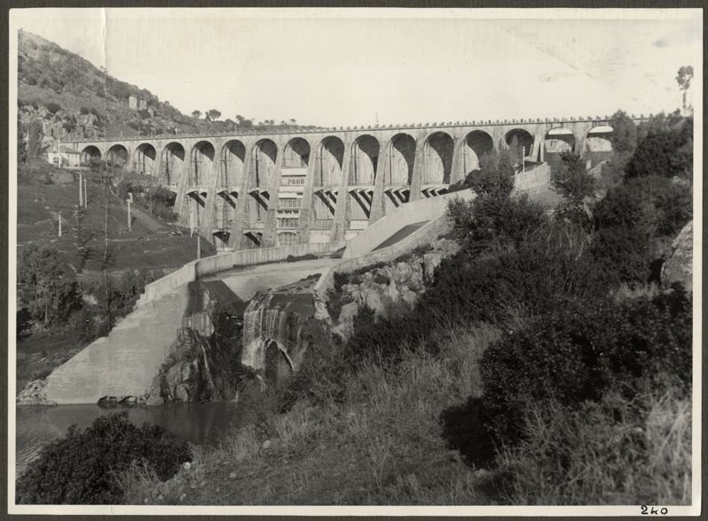 La conception a été confiée à l'ingénieur Angelo Omodeo, qui a donné son nom au lac artificiel issu de la construction du barrage. Au lieu de cela, l'ingénieur Giulio Dolcetta, un personnage lié aux grands travaux d'assainissement des terres de l'île, a dirigé les travaux. L'inauguration du grand bâtiment rectiligne, à arcades multiples, reposant presque entièrement sur un compteur de trachyte compact, a eu lieu le 28 avril 1924 en présence du roi d'Italie, Vittorio Emanuele III.