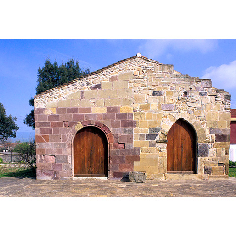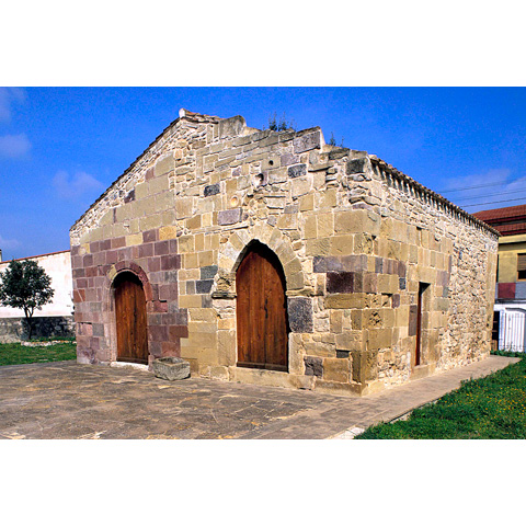 Sa crèsia diat dèvere èssere istada cunsagrada in su 1316. In sa parte de sa fatzada chi currispondet a s'originària àula mononavata, chi acasàgiat unu portale cun centina ogivale, sunt presentes sos allògios de pèrdidos batzinos tzeràmicos. A sos fines de sa collocatzione cronològica de s'edifìtziu sa presèntzia de sos batzinos tzeràmicos no agiuat, ca s'impreu issoro in sa decoradura de sas crèsias romànicas sardas est documentadu dae sa segunda metade de su sèculu XI finas a sa metade de su XIV; in sa segunda metade de su sèculu XIII fiant istados comente si siat impreados in modu preponderante. Sa navada N, fraigada in filari de contzas squadrati de vulcanite ruja, chi creant unu cuntrastu cromàticu cun cuddos in arenaria groga de s'àtera, fiat istada atacada a s'impiantu in su sèculu XV; bi s'aberit unu portale a totu de ses, longu cale curret una sùtile modanatura a trau. In manera cumplessiva sa fatzada, abbolotu a ISCO, est larga m 7,95. Ambas navadas, partzidas dae pilastros, sunt istadas rimaneggiate. Unu de sos pilastros presentat de sos istampos longu sos àngulos, ue segundu sa traditzione si ligaiant sos cundennados a morte in isetu de s'esecutzione.
