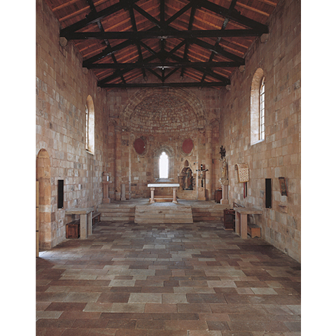 S'àbside tenet fundu semiesagonale e cobertura a catino emisfèricu. No est s'àbside romànica, chi teniat forma semitzircolare, ma cudda torrada a costrùere intro su 1336. A s'internu est istada ricavada una nitza trilobata su cale pilastrino deretu, de tipu ofitico, acudit dae sa tzima de sa fatzada originària.