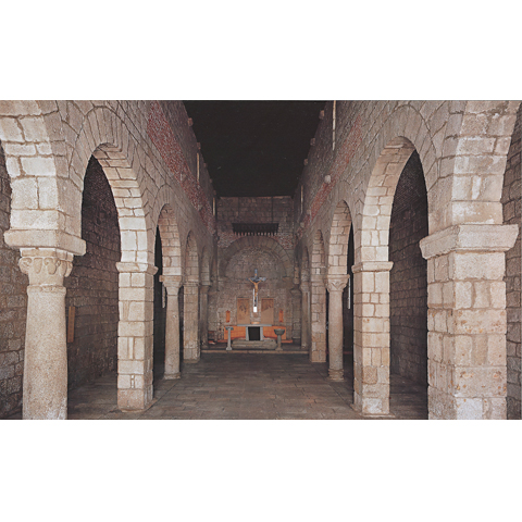 Sa crèsia (m 33 x 13, arta 12 m belle) tenet fundu a tres navadas partzidas dae arcadas subra de pilastros e colunnas, segundu unu sistema acchidadu de amparos. Sos capitellos sunt fintzas issos in granitu. A coronare sos pilastros b'at àbacos spessi de forma a tuva de piràmide. Intre sos capitellos unu si presentat a àngulos smussati, atestadu in sa badde de su Po partinde dae s'Artu Medioevu, mentras sos decorados presentant sa forma generale a tuva de conu bortuladu e àteros duos ancora sunt in manera simpre de sas bases de colunna impreadas a s'uopo. Duos de custos capitellos diant bìdere rapresentados de pare a pare: unu caras contornate de aende·los bolados e s'àteru de sas protomi de mascru, motivos inquadrabili in època longobarda.
