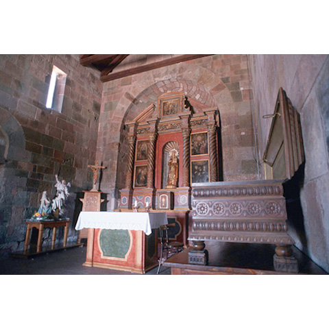 Sa crèsia fiat istadu pesada a sa metade de su sèculu XII in pedra vulcànica ruja, segada in cantones bene squadrati. Tenet fundu mononavata; sas dimensiones in longària sunt ricavadas dae sa ripetitzione de su mòdulu cuadradu basadu subra sa larghesa de s'àula matessi, chi tenet cobertura de linna.