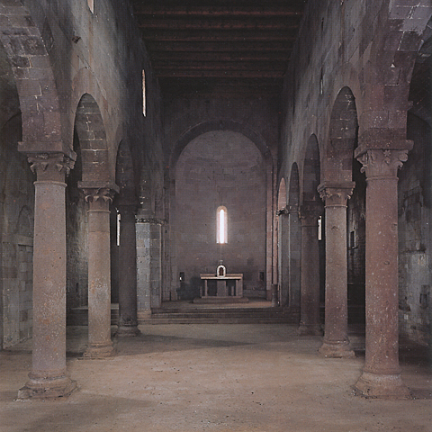 Sa crèsia (m 33 x 12, artària m 10 belle) ᅢᄄ in pedra vulcànica de cavas locales. S'imponente isvilupu dimensionale derivat de sa funtzione de catedrale de sa diòtzesi de Bisarcio. S'impiantu torrat a artziare a unu perìodu antetzedente su 1090, annu in cale unu documentu de archìviu replicat unu piᅢᄍ antigu àutu de possessu, andadu pèrdidu in su fogu chi aiat distrùidu sa prima catedrale. In s'atuale edifìtziu si distinghent tres tempos de fàbrica: a s'impiantu de su sèculu XI torrant a artziare sos filari de cantones agigu sbozzati, a sa base de sas murature de sos costàgios cara a E. Sa segunda fase edilìtzia, sutzessiva a sa metᅢᅠ de su sèculu XII, ᅢᄄ caraterizada dae cantones de mèdia pezzatura bene sagomati. Su pòrticu fiat istadu agiuntu a sos cumintzos de su sèculu XIII. S'ala manca de su pòrticu, crollada, fiat istadu torrada a costrùere in su sèculu XVI.