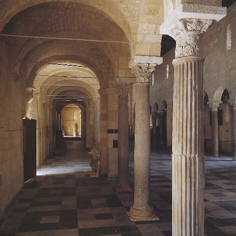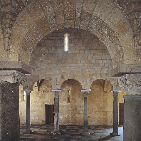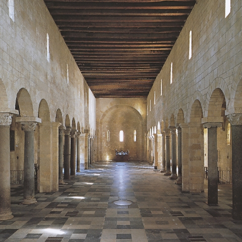 Vàrias campagnas de iscavu archeològicu ant individuadu sos resìduos muràrios de duas crèsias prus antigas, chi torrant a artziare a su V-sèculu VII. Una, prus pitica, istat suta de su costàgiu N de sa basìlica romànica, s'àtera s'estendet in su setore esternu N. Fiant ambas a tres navadas ma sa prus pitica teniat s'àbside a O, s'àtera a E.